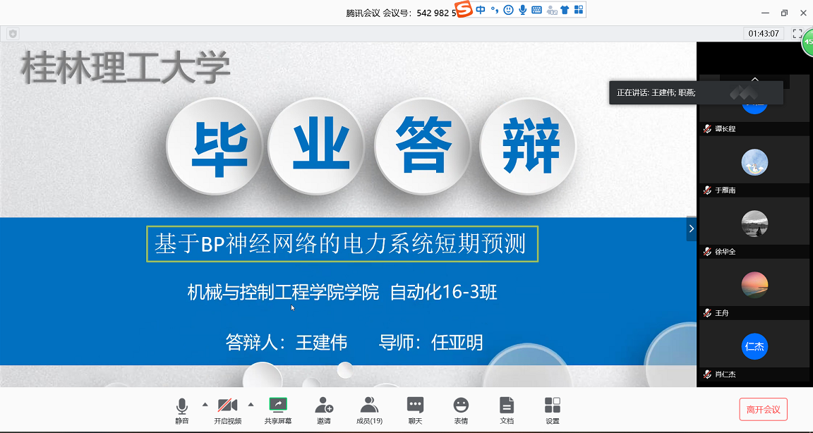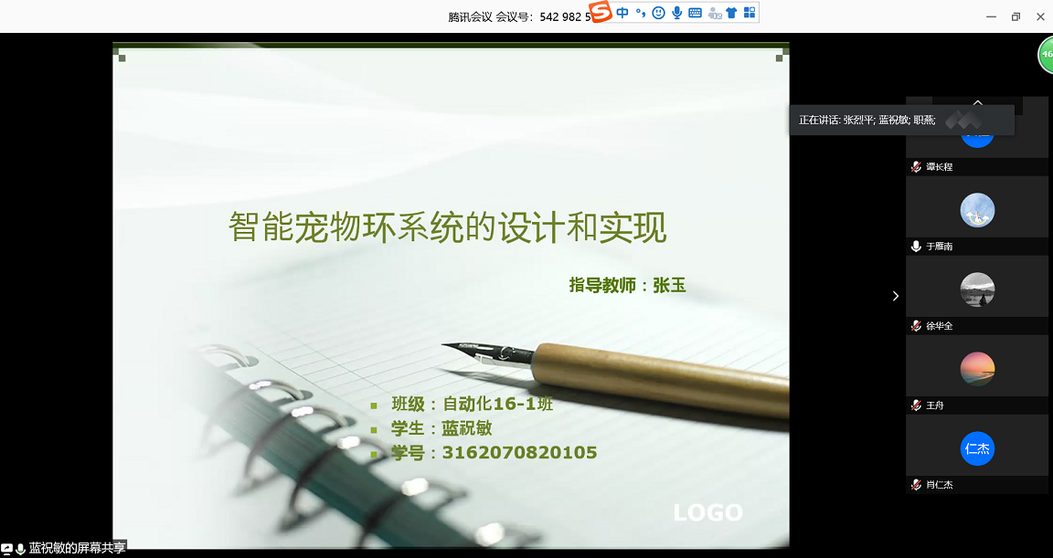 为应对此次新冠肺炎疫情对毕业设计工作造成的不利影响,顺利完成毕业设计开题答辩工作。自动化教研室于3月24日召开了全体教师线上工作会议,传达了学校及学院对毕业设计工作的指示,部署了开题答辩工作的实施方案,决定所有学生原则上均需参加开题答辩,将全体教师及学生分成6个答辩小组,各小组由答辩秘书先行建立好各个答辩小组QQ群,做好答辩前有关事项的通知筹备等工作。4月5日至8日,自动化教研室利用腾讯会议平台分别组织6个答辩小组陆续完成了线上开题答辩工作。今年自动化专业2020届共有毕业生116名,除去部分学生因特殊原因无法参加答辩,共107名学生参加了此次开题答辩。各个答辩组通过腾讯会议平台来组织线上答辩,学生在腾讯会议上展示答辩PPT来进行课题的开题情况介绍,之后由答辩组老师对学生的开题情况进行针询评议,提出改进意见等,每个学生答辩结束后,老师给出答辩分数,填写答辩记录表。