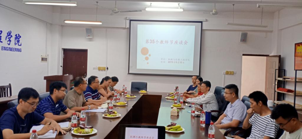 在第35个教师节当天,我院于下午三点在07215举办了教师座谈会。院党委书记耿俊茂、院长张烈平、党委副书记王迎波、全体副院长、近三年学院新进教师、教研室实验室主任、副主任、学工团委、办公室老师参加座谈会。会议由党委书记耿俊茂主持。