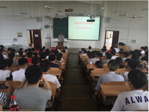 2019年6月17日下午,学院组织2016级的机械设计制造及其自动化和机械电子工程两个专业的学生,在雁山07319召开了生产实习动员大会,相关专业的生产实习指导老师和学生共240余名师生参加动员大会。动员会由沈中华老师主持。