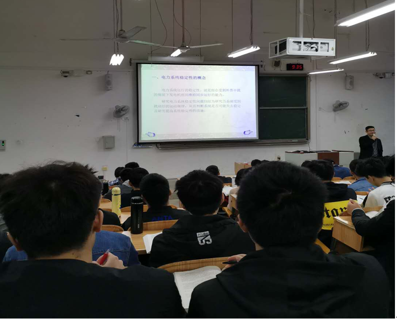 本次公开课主讲老师是青年教师任亚明博士,讲授课程为《电力系统工程基础》,教学中,任老师讲述了电力系统电压调节措施、电力系统稳定性等教学内容,将一些行业新理念渗透到教学环节中,教学方法呈现多样化特点。教学思路清晰,展示了实际教学水平,取得了较好的教学效果。同学们对课程的内容都表现出浓厚的兴趣,课堂表现积极活跃。