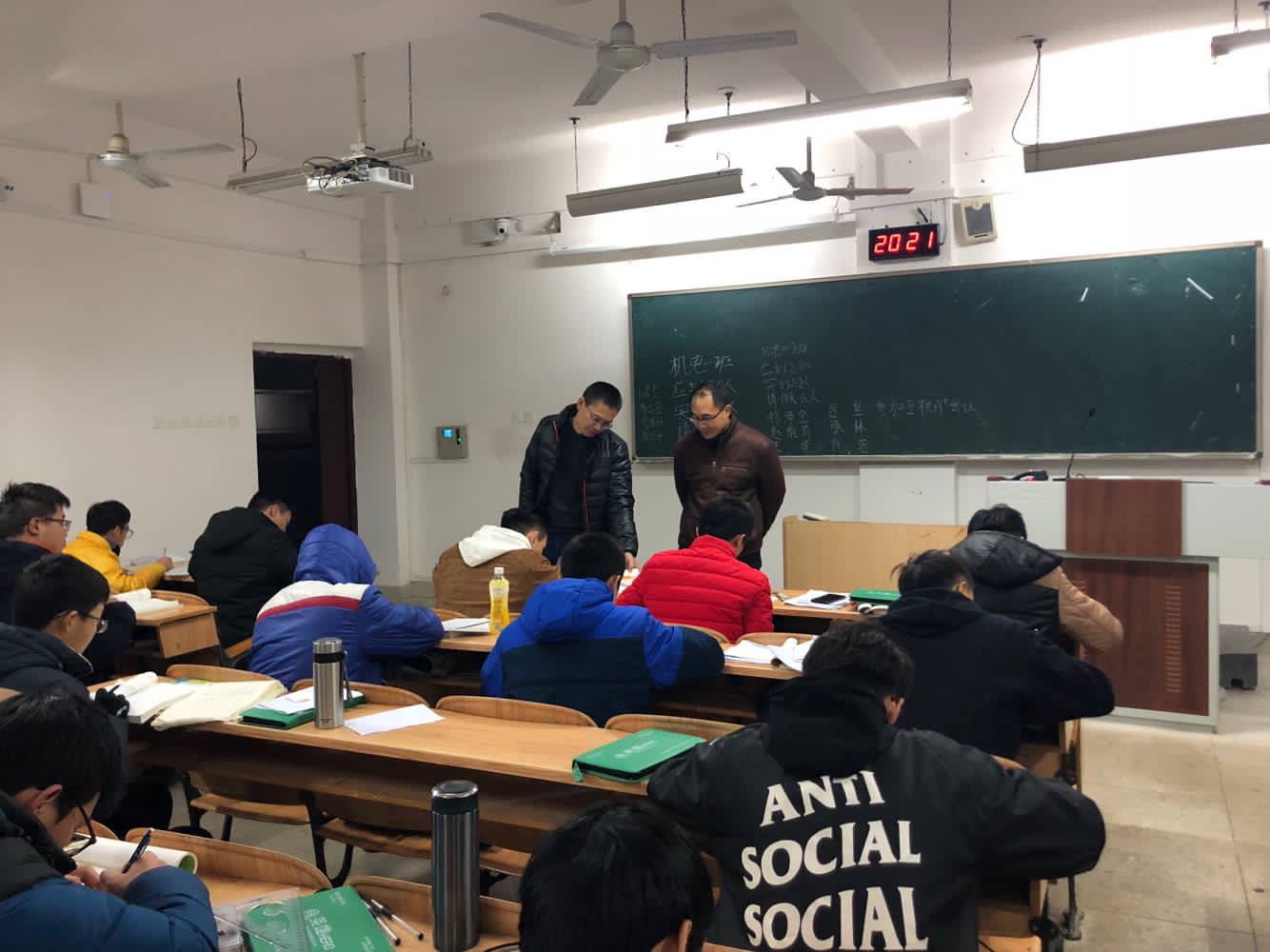 学院注重学风建设,探索开展学生自主管理实践,特意针对2018级学生采取班级民主决策早晚自习,并在学校不统一要求情况下,由学生干部自我管理和研究生助教协助方式进行学习实践活动。为深入了解学生学习情况,1月4日晚,学工部(处)副部(处)长冯广辉在我院党委副书记耿俊茂陪同下深入学院晚自习教室,检查我院学生自发组织的的晚自习情况。