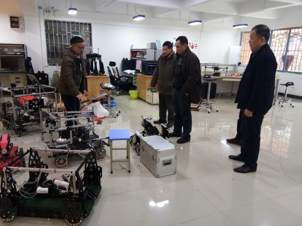 孙宁副书记在了解学院大学生机器人创新创业基地情况
