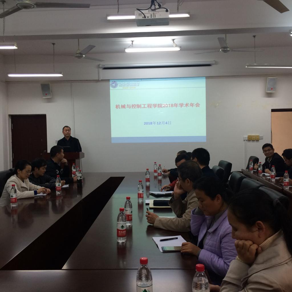 12月4日下午,机械与控制工程学院2018年学术年会在雁山校区07215会议室召开。学院领导、全体教职工参加了会议,会议由学院副院长钟志贤主持。学院党委书记麦范金对学院学术年会的召开做了发言。他强调指出:本次年度学术会议是按照学院的年度工作安排开展的,目的是通过召开学术会议,使教师们互相分享学术成果、促进学术交流,取长补短,使学院学术科研水平稳步发展,争取来年再上一个新台阶。