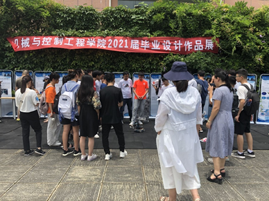 机械与控制工程学院2021届优秀毕业设计作品展于6月22-23日在雁山校区文德楼和明理楼之间广场展出。6月22日上午,学院李海侠副院长等有关领导以及部分师生一同到现场参观优秀毕业设计作品展,相关负责人就优秀毕业设计作品布展、作品功能等情况向学院其他老师和学生作了详细说明。