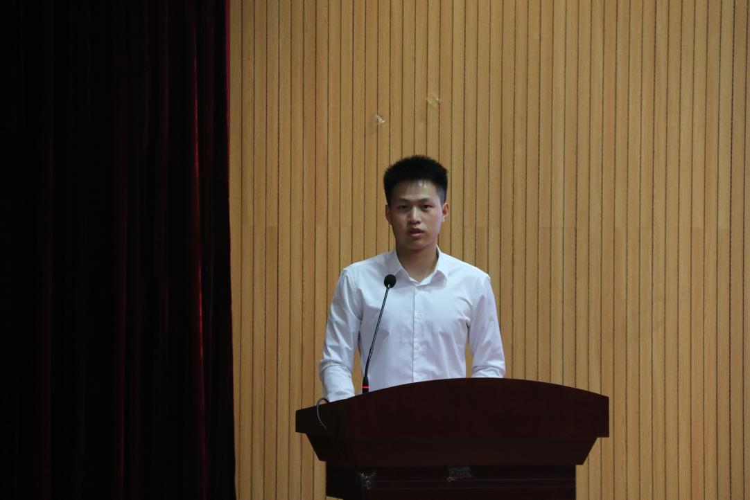 2020级机械工程专业学生钱建明作为老生代表发言。他从自身经历出发,讲述自己成为研究生一年以来的遇到的问题以及收获,并给新生学弟学妹们提出建议:要正确认知研究生身份,以学习和科研为主,重视培养自己的研究能力,努力加强自身本领,做一名潜心学术和励志爱国的新时代研究生。