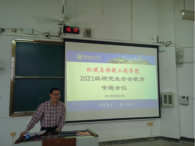 为加强安全教育,提高同学们的安全意识,10月15日下午,机械与控制工程学院在05103教室召开2021级研究生安全教育专题会议,会议由学院研究生辅导员马文硕老师主持,学院党委副书记王迎波、学院副院长孙旋出席会议并讲话,2021级全体研究生参加了此次会议。