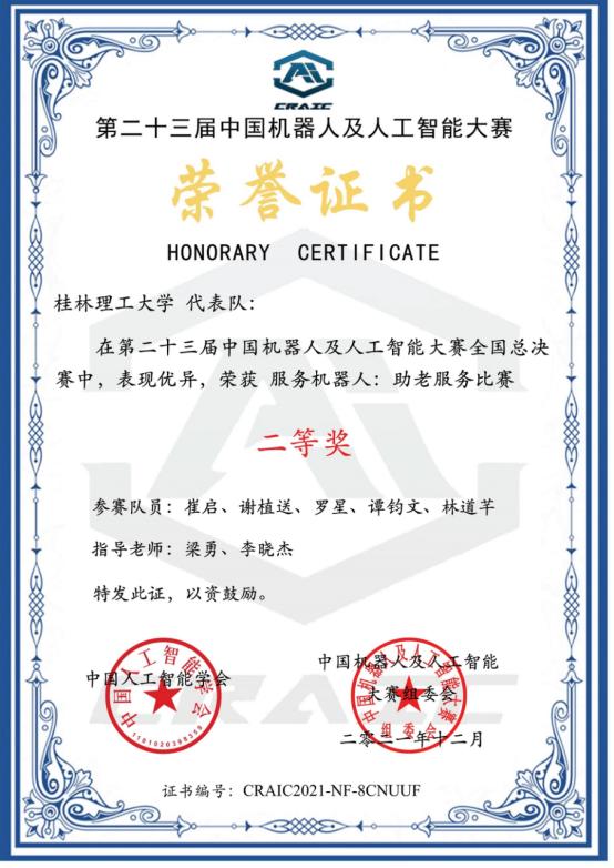 中国机器人及人工智能大赛是国内首个在机器人及人工智能领域提出,并将关键技术研发、应用相结合的比赛。大赛于2020年被列入中国高等教育学会发布的《2020年全国普通高等学校学科竞赛排行榜》,属于A类赛事。大赛致力于推动广大学生参与机器人与人工智能领域的科技创新实践,现已成为国内规模最大、影响力最强、专业水平最高的机器人赛事之一。大赛由中国人工智能学会主办,今年的大赛采取线上线下混合的方式,聚集了来自清华大学、哈尔滨工业大学、上海交通大学、澳门大学、苏州大学、西安电子科技大学等400多所高校的千余支参赛队伍近万人同台竞技。经过各省市地区赛的激烈角逐,最终有1000多支优秀队伍晋级全国总决赛。我校参加的5支队伍全部晋级全国总决赛。