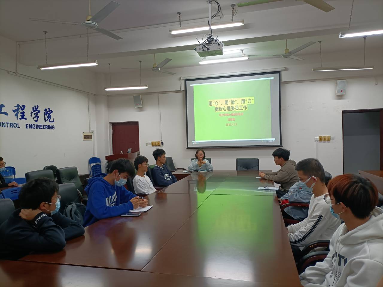 为进一步提高心理委员的工作能力,加强心理健康教育工作,4月22日晚我院在学院议事厅07215开展了第二场心理委员培训会,本次培训由刘培培老师主讲,学院各班心理委员参加本次培训会。