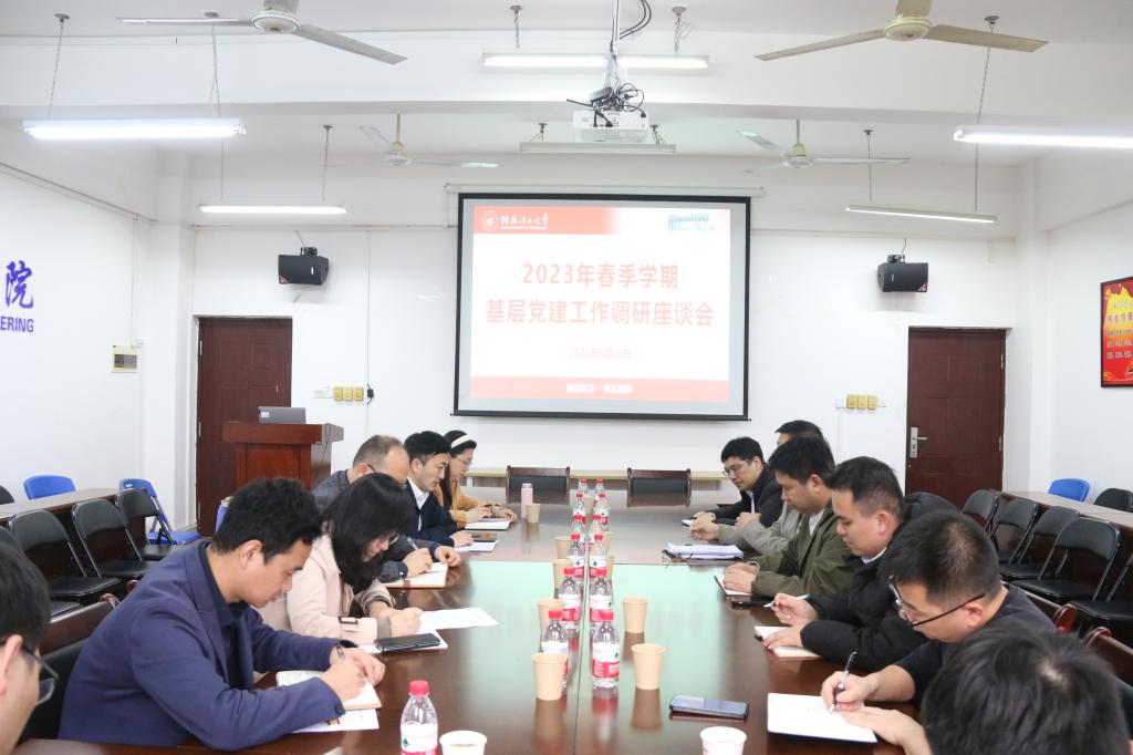 3月23日下午,学校党委组织部部长唐壮东、党委宣传部部长叶昊、党委统战部部长邱杰,在党委组织部副部长潘思伊等人的陪同下到我院开展2023年春季学期基层党建工作调研。学院领导班子在雁山07215会议室进行了工作汇报。
