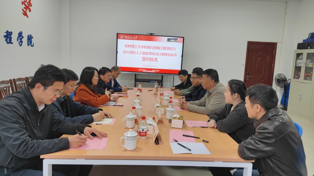 最后,贺州学院人工智能学院院长凌永发和张烈平院长签订了“机械与控制工程学院对口支援贺州学院人工智能学院”协议书。对口支援协议书的签订对双方在人才培养、教师能力提升、访学培训、挂职锻炼以及学生考研、学科竞赛给予了大力支持和帮扶。
