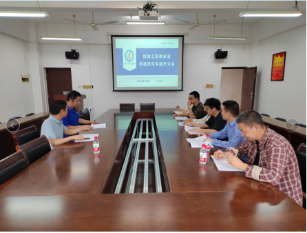 2023年4月20日上午,机械工程教研室在07215会议室召开师德师风学习和教书育人专题讨论会。会议由教研室主任沈中华主持,组织当天上午无课的专业教师学习《关于进一步加强师德师风建设工作的通知》,《教育部公开曝光违反教师职业行为十项准则典型案例》。