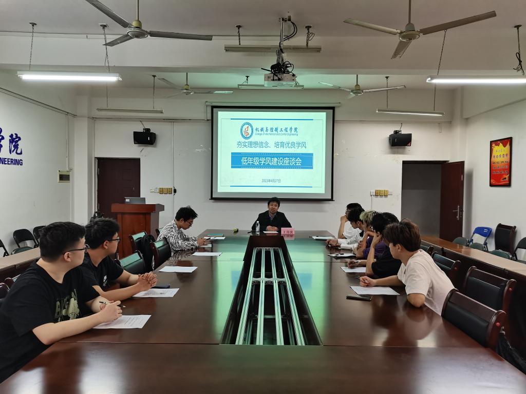 为进一步加强学风建设,营造良好的育人环境,培养学生优秀品质,让良好的学习作风落实到我院每个学生的心中和行动上。机械与控制工程学院于4月27日和5月8日07215会议室召开了“夯实理想信念,培育优良学风”低年级学风建设座谈会学院党委副书记王迎波学工组长马文硕辅导员韦小巧、罗泽明出席座谈会,两次座谈会分别针对2022级和2021级本科生开展,各年级班级学习委员参加了此次座谈