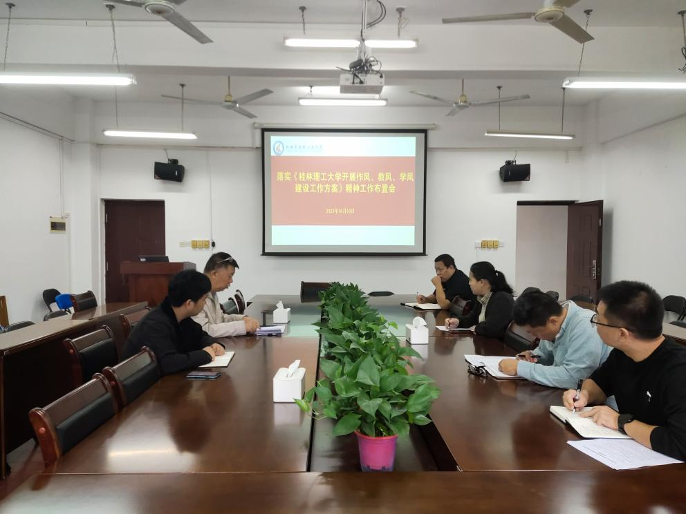10月10日上午,学院在雁山校区07215会议室召开了落实《桂林理工大学开展作风、教风、学风建设方案》精神工作布置会。会议由学院党委书记李治主持,学院党政领导班子成员参加本次会议。