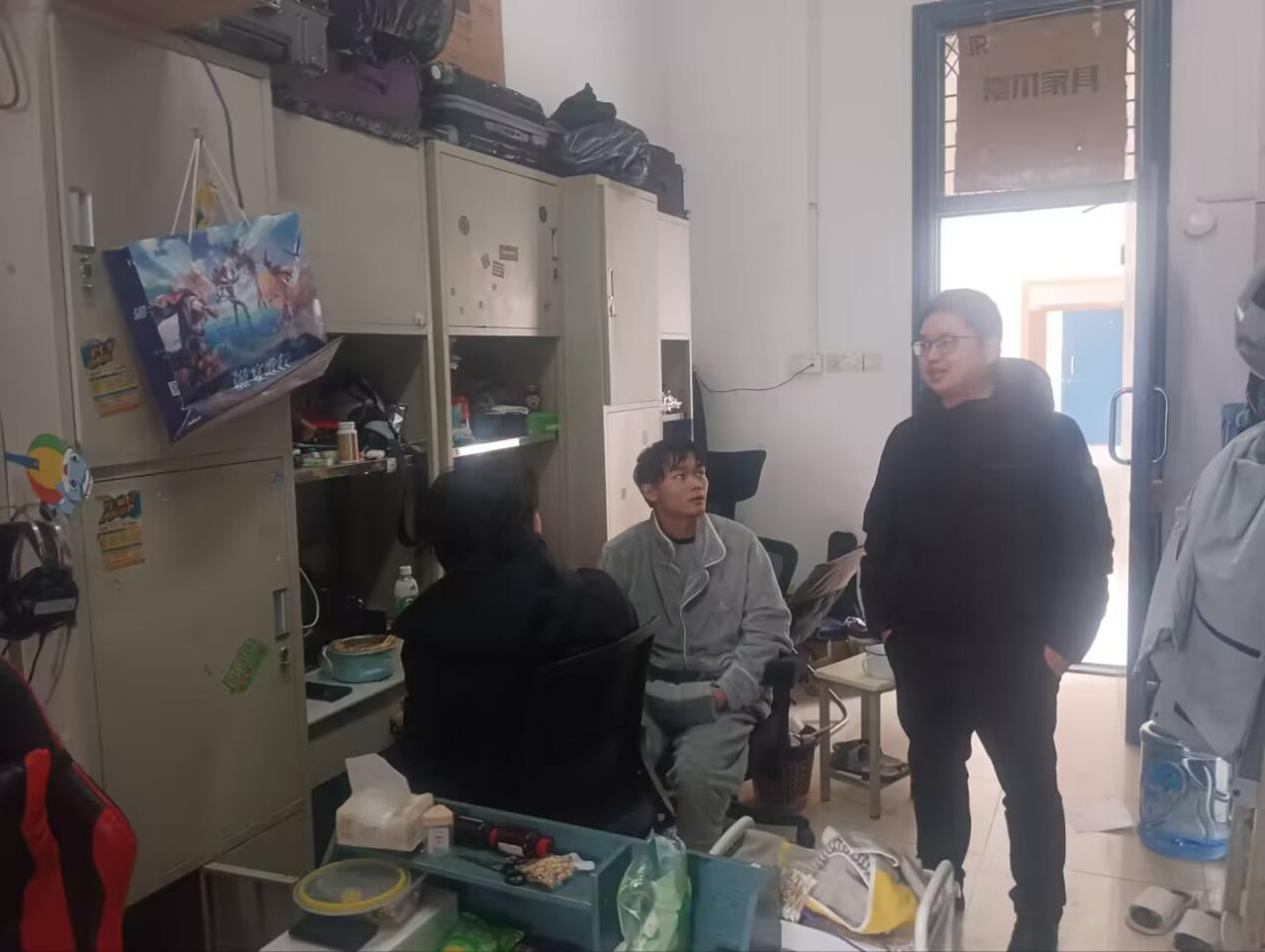 在走访宿舍过程中,学院领导老师与同学们亲切交流了寒假期间的生活学习情况和返校后新学期规划,倾听同学们目前在学习、生活中遇到的困难和问题,实时为同学们答疑解惑、解决困难,并提出宝贵建议。同时重点强调了宿舍安全卫生情况,提高宿舍安全意识,遵守宿舍管理规定,宿舍生活中要注意财产安全、用电安全和人身安全。加强宿舍清洁管理,保持宿舍环境卫生,营造良好舒适的宿舍环境,以更饱满的状态迎接新学期的学习和生活。