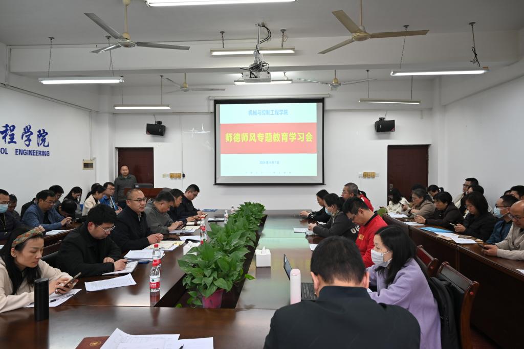 4月7日下午,学院在07215会议室召开师德师风专题教育学习会。会议由学院党委负责人主持,学院党政领导班子成员、全体教职工参加。