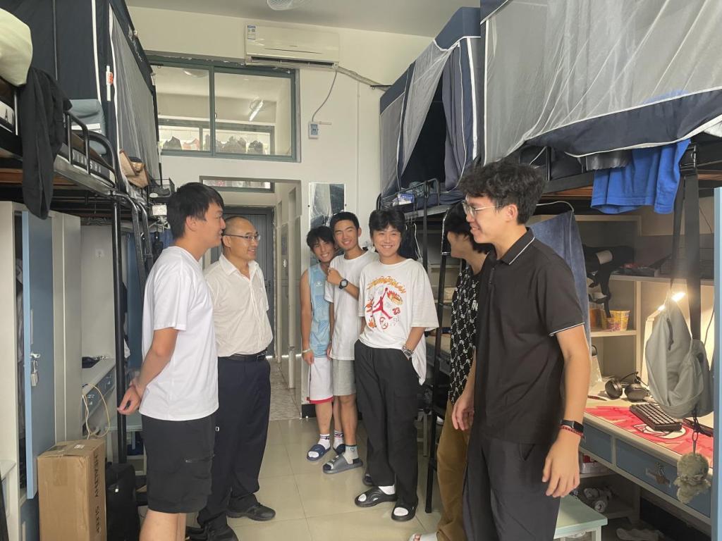 在寝室走访中,院长钟志贤与学生亲切交谈,细致了解大家的住宿生活状况,耐心倾听需求与建议,针对学业上的疑问,为学生提供具体的学习方法指导,助力解决学业难题。