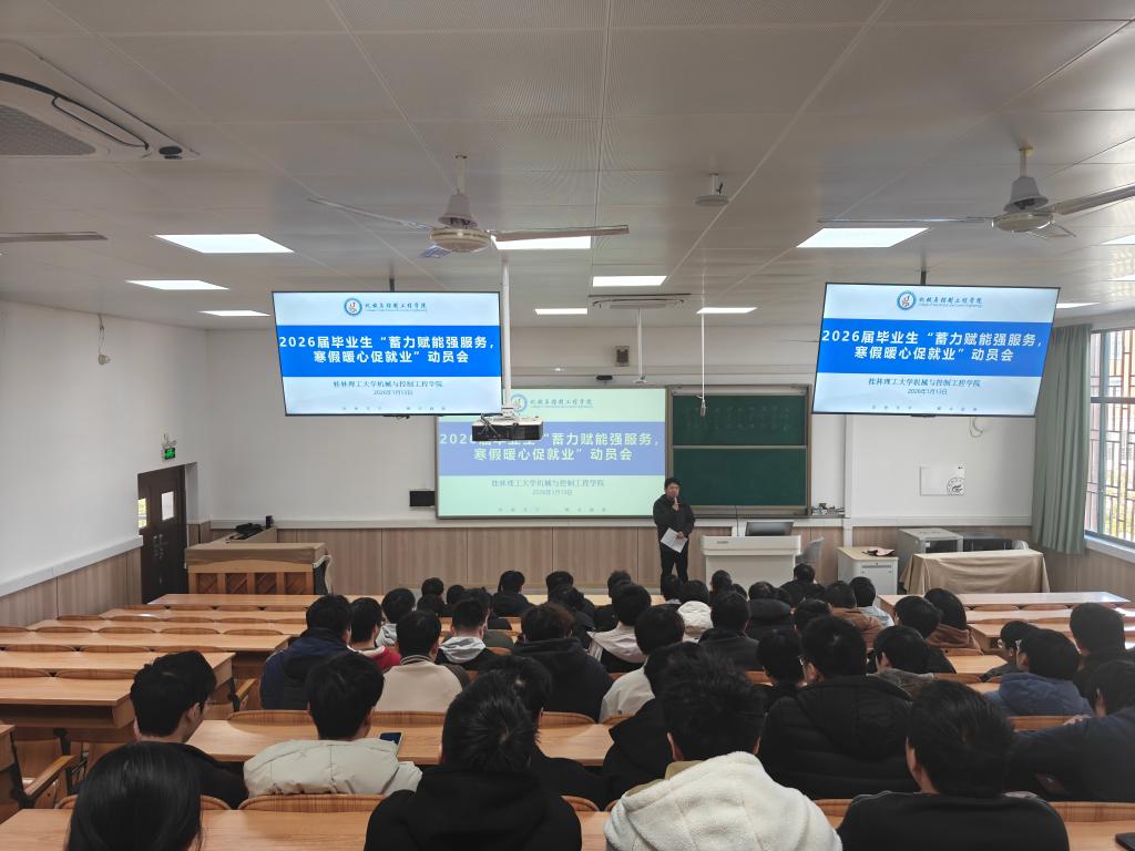 为抢抓寒假促就业关键期,全力促进2026届毕业生更充分、更高质量就业,我院于1月13日下午14:30在我院雁山校区07520开展2026届毕业生“蓄力赋能强服务寒假暖心促就业”动员会,本次动员会由学院党委副书记王迎波牵头组织,辅导员罗泽明、王中豪及全体2022级毕业生学生参与。