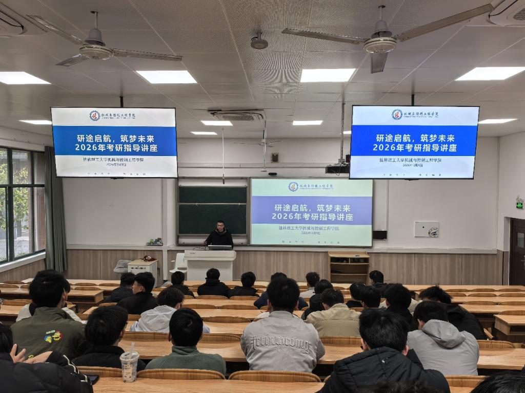 为进一步加强学风建设,帮助考研学生明确考研复试和调剂流程以及如何准备,我院于3月9日下午16:00在我院雁山校区07118开展“研途启航,筑梦未来”2026年考研指导讲座,本次讲座由学院副院长陈辉庆担任主讲人,辅导员罗泽明、王中豪及全体2022级考研学生参与。