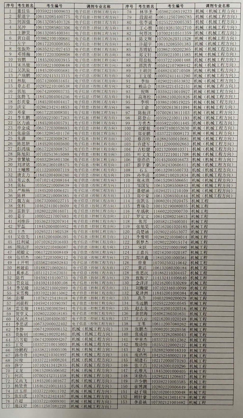 机械与控制工程学院2022年硕士研究生调剂复试人员名单公示(含机械工程、机械(机械工程方向)、电子信息(控制工程方向)三个硕士点)如下图: