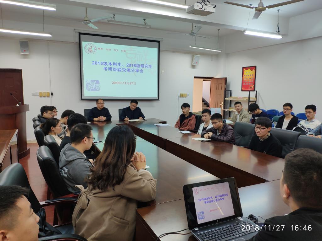 11月27日下午,我院在07215会议室举行了2015级本科生、2018级研究生考研经验交流分享会,学院副院长孙璇,党委副书记耿俊茂,2015级毕业班辅导员韩波及2015级本科生、2018级研究生20多人参加分享会。
