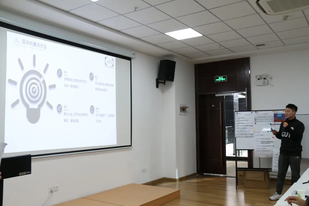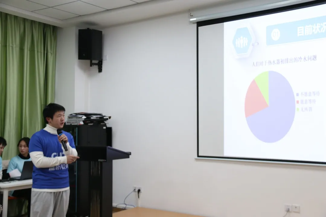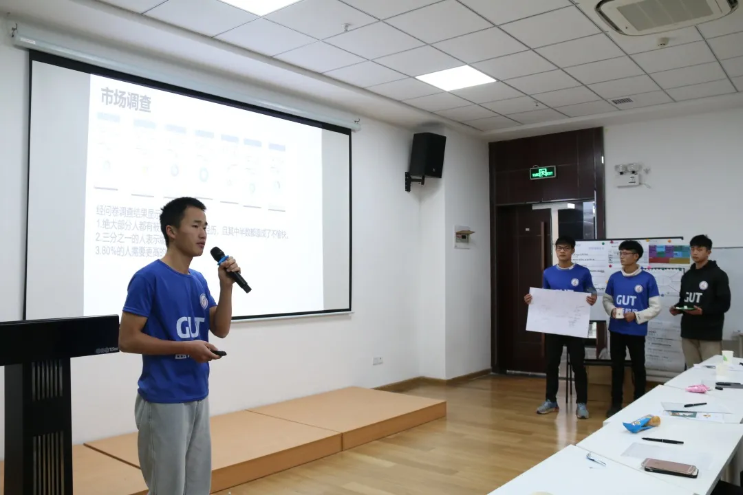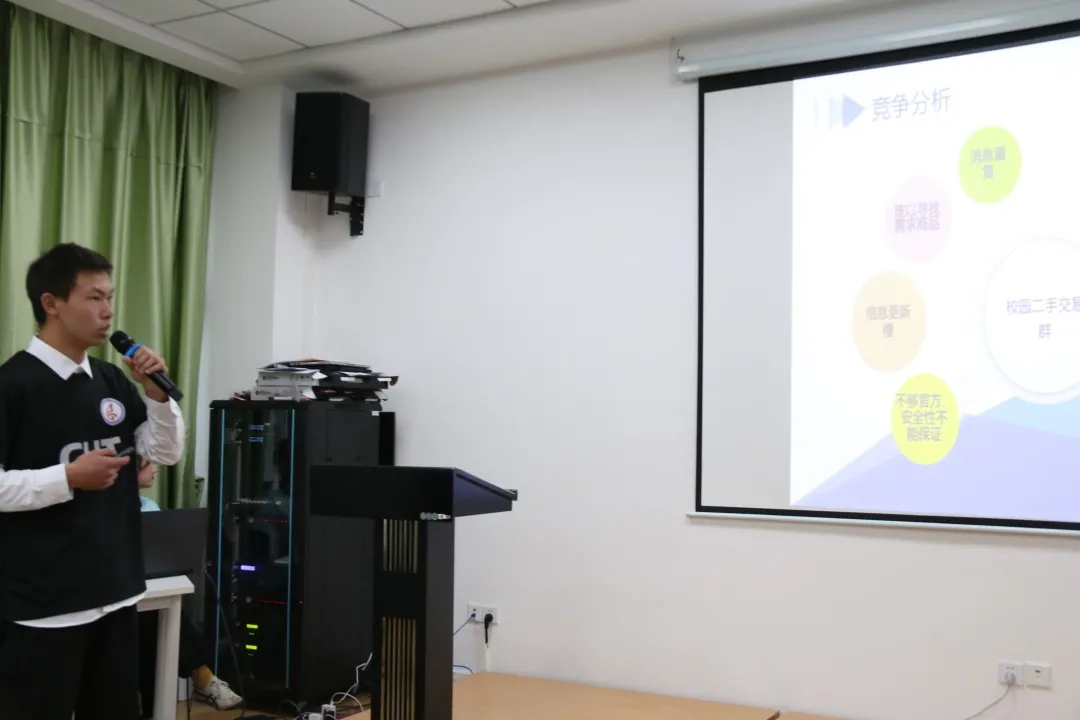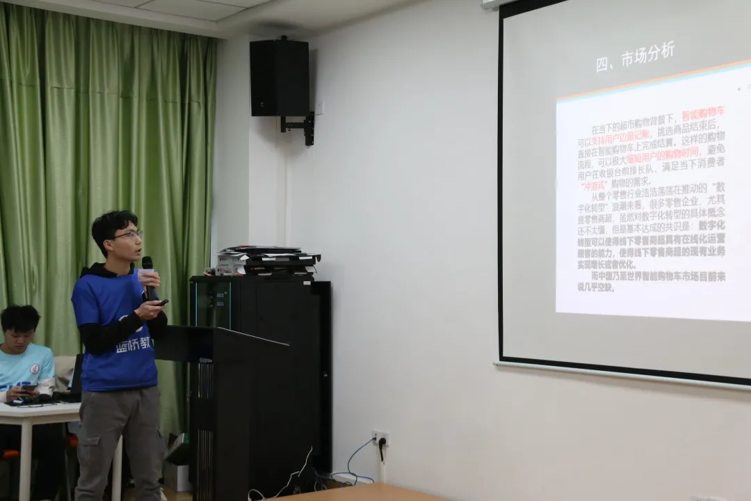 在经过充分准备后,各小组排人上台进行路演。担任此次路演评委的有导师于帅帅,导师刘培培,导师李锋,导师滕漳红,导师宋鹏,导师李阳阳。各小组需要在5分钟内通过演讲进行项目介绍。评委老师认真聆听项目内容,通过各项目讲解人的现场展示,根据项目进展和成果、讲解风范、原型产品设计与故事板、创新性和投资价值等多方面内容进行打分,对发现的问题提出可行性建议,鼓励同学们继续丰富项目内容,积极参与之后的大学生创新创业大赛。