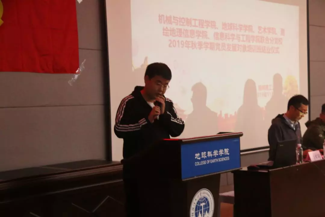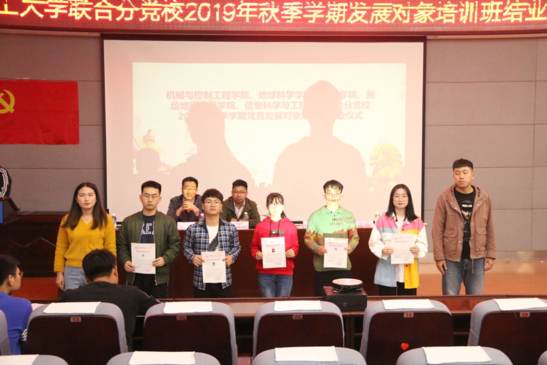 我校地球科学学院、艺术学院、测绘地理信息学院、机械与控制工程学院联合分党校2019年秋季学期党员发展对象培训班结课典礼于01501顺利召开。