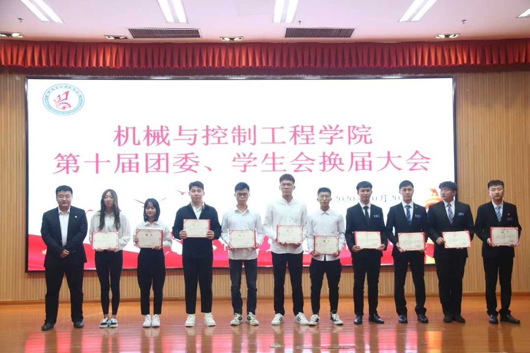 为进一步提升学生干部素养,加强对青年学生的思想引领,培养担当民族复兴大任的时代新青年,2020年10月20日19:30,机械与控制工程学院于图书馆报告厅隆重举行“2020年度机械与控制工程学院迎新活动先进个人及志愿者表彰大会暨第十届团委、学生会换届大会”。出席本次大会的有学院学工组组长马文硕老师、团委书记于帅帅老师、19级辅导员李峰老师,20级辅导员滕漳红老师,18级兼职辅导员张敏老师以及学院团委、学生会全体学生干部和实习干事。