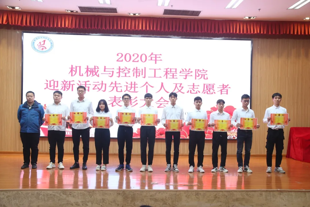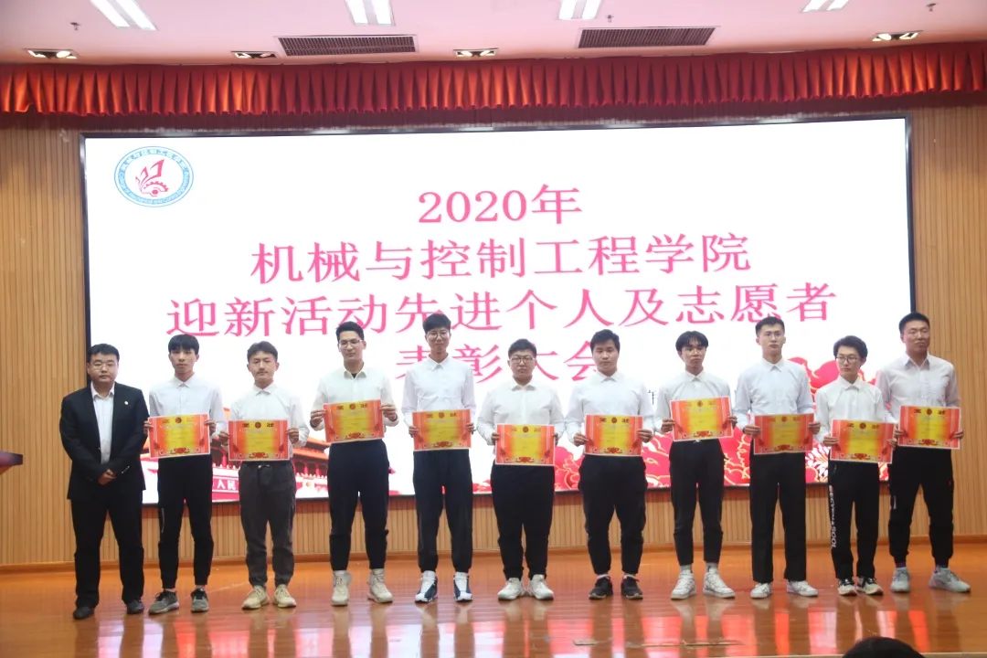 首先进行的是迎新活动先进个人及志愿者表彰大会。学院学工组长马文硕老师和团委书记于帅帅老师为二十名获得迎新活动先进个人奖的同学颁发奖状。