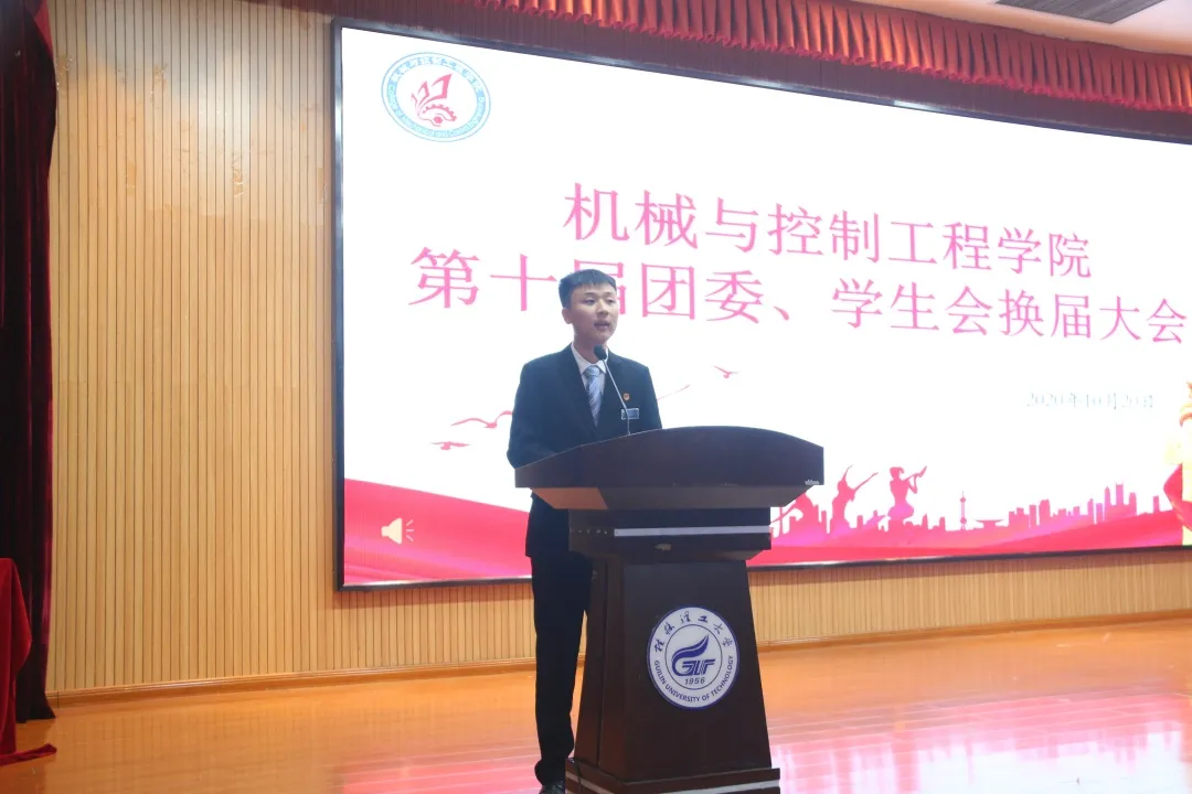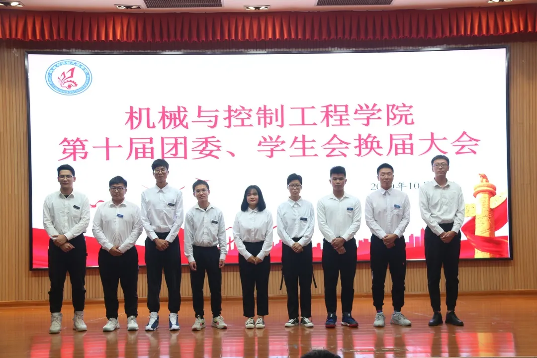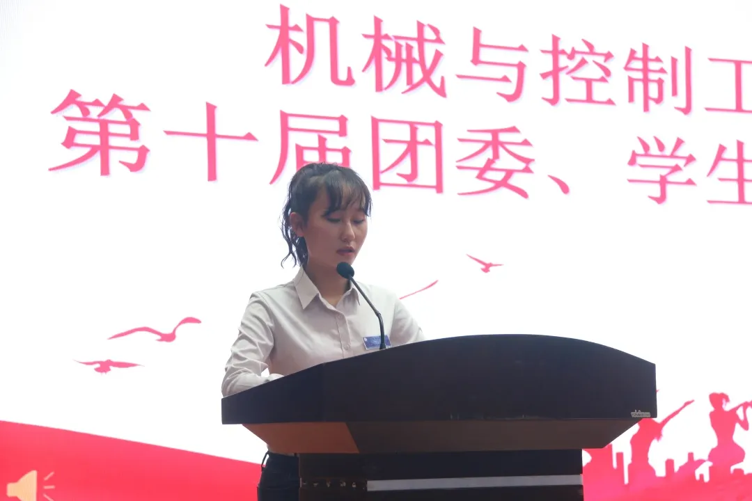 在激昂的团歌下,机械与控制工程学院团委、学生会第十届换届大会拉开帷幕。往届团委学生副书记、学生会主席团代表、融媒体主任团代表进行了述职发言。