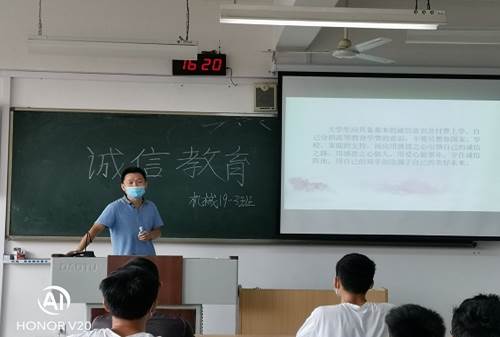 班会上,各班班长先围绕诚信的含义,通过讲述一些与诚信相关的故事和格言,让同学们了解诚信的重要性。接着列举出大学生在不同方面具有的不诚信表现,并总结出大学生应具备的基本的诚信意识以及应有的诚信行为。最后,部分班主任对本次班会进行总结发言,倡导同学们走诚信之道,指出同学们期末备考务必要诚信应考。
