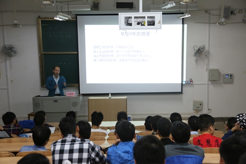 首先,杨建新学长为同学们讲解了毕业后九年内的感受,分析了毕业九年来职业工作的变化。随后,杨建新学长就怎样做好职业选择让同学在将来的日子里面思考“什么是好工作,自己想要什么,未来成为怎样的人这三个问题,同时希望同学们要理解社会的现实,不要好高骛远,要从基础做起,做好自己。最后,杨建新学长希望在场同学们要增强自己的学习能力,扩大自己的逻辑思维能力,作为一个大学生要心存梦想,敢于追求,为提高自己价值努力奋斗,在校期间要学好专业技能,为自己的将来打好基础。