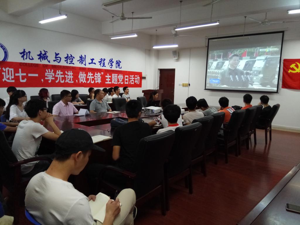 为庆祝中国共产党成立96周年和香港特别行政区成立20周年,扎实推进“两学一做”学习教育常态化制度化,71日上午,机械与控制工程学院党委组织广大学生党员在0721508113举办了一场“迎七一,学先进,做先锋”的主题党日活动。学院党委副书记邓洁琼、学院副院长钟志贤、机械工程实验室老师陈辉庆、学院党建辅导员黎云鹏以及在校学生党员50多人参加了党日活动。活动由黎云鹏老师主持。