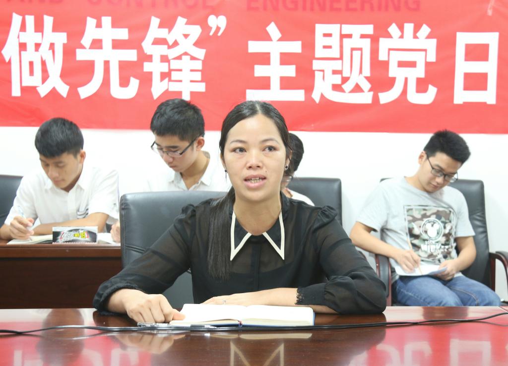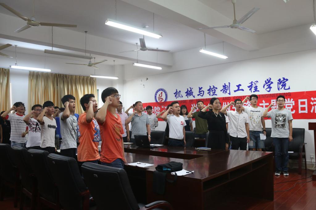 随后,在鲜艳的党旗下,在学院党委副书记邓洁琼老师带领下,在场党员全体起立,举起右拳,庄严地重温了入党誓词。