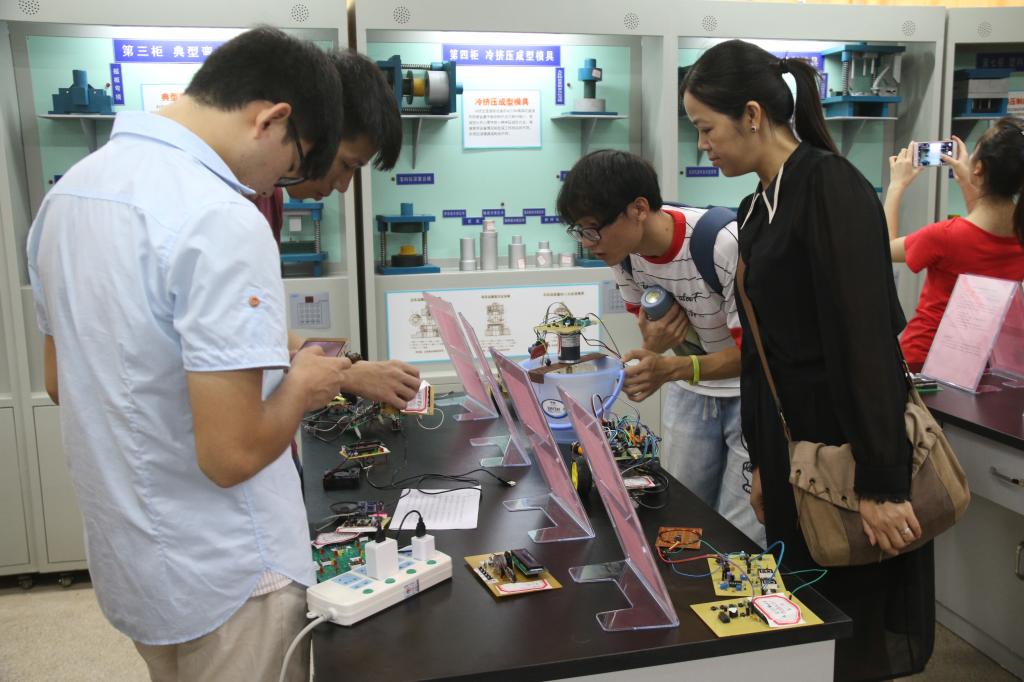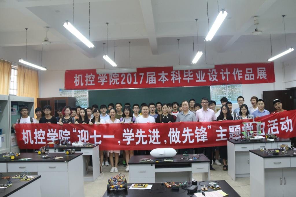 最后,全体党员共同参观学习了学院2017届本科毕业设计优秀作品展,本次展出作品包括“基于STC89C52的夜间行车预警系统”、“基于单片机的公交车燃爆应急处理系统”、“基于单片机控制的智能捕鼠器”、“基于无线传感网络的室内灯光控制系统”、“基于PLC的汽车轮毂跳动检测系统”、“便捷式甘蔗刀结构设计与研制”、“3D打印蛇形机器人模型设计与实现”、和“机器鱼模型设计与实现”等,涉及单片机控制、PLC控制、无线通信、3D打印、机械设计等多个领域。