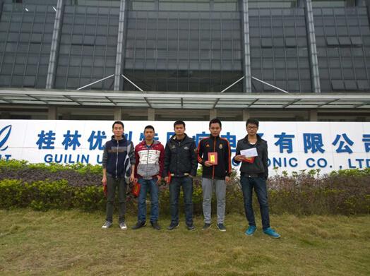 2014年12月10日,在桂林优利特公司举办的第二届“优利特”大学生创新设计大赛中,我院有陈世武、陆挺、李健乘等9名同学经过一个多月的努力准备,在电子组制作水温控制系统比赛中取得优异成绩,其中陈世武、陆挺、李健乘组获得三等奖,奖金2000元,吴秋兵、何基斜、黄志壮组获得鼓励奖,奖金500元。