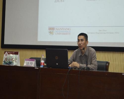 讲座伊始,赵丹博士向师生们简单介绍了新加坡的地理位置、文化渊源以及科技领域等方面的发展情况,让大家对新加坡有了更进一步的了解。随后,赵丹博士就其工作的南洋理工大学以及机械与宇航工程学院做了详细的介绍,从学校的发展历史、校园环境、院系分布、学术研究等方面进行阐述。然后,赵博士结合自己在专业上的知识和多年的科研成果,重点向大家介绍了燃烧学方面的各项科研项目与成果。赵丹博士首先从燃烧噪音的产生、传播及耦合入题,逐步介绍了燃烧的定义、不稳定性以及燃烧状态、如何运用仿真系统模拟燃烧来研究其特性、以及在实验过程中所运用到的测量方法等。此外,赵丹博士还向大家介绍了无人机被动控制、雨水发电等相关领域的研究动态。赵丹博士的讲座专业性强、领域独特而创新,让同学们对燃烧系统及其噪音控制领域有了更深一步的了解,也对该领域科研技术发展的前景和方向有了深层次的认识。