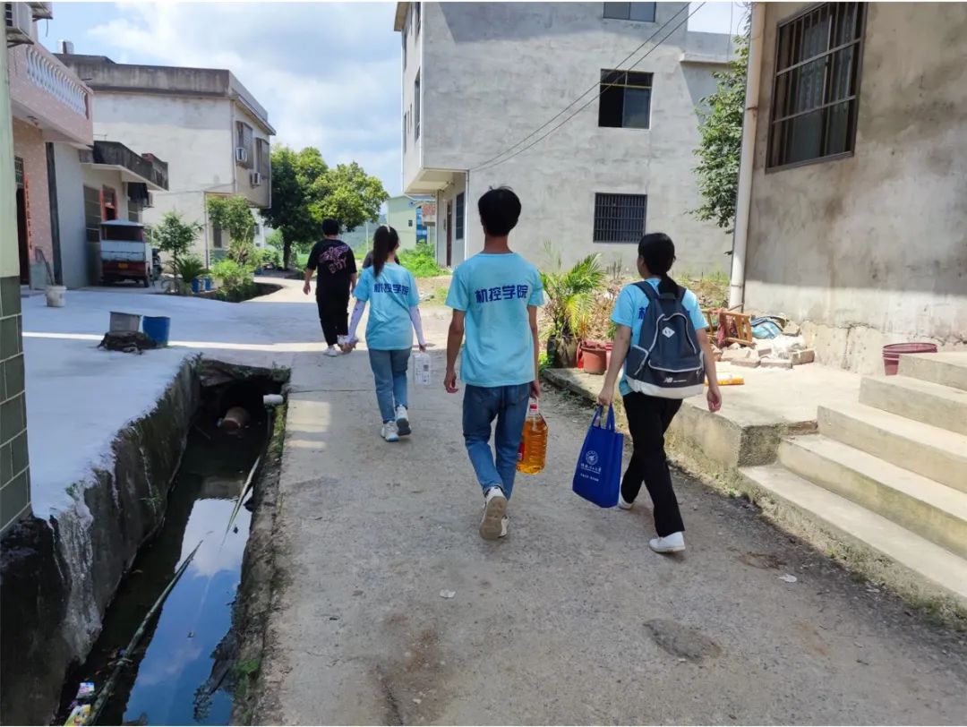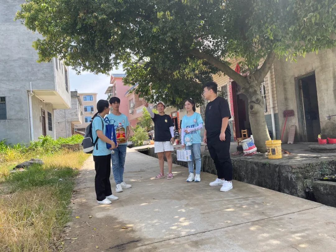 炎炎夏日,同学们拿着准备好的支教用具和生活用品来到会仙镇,给在会仙镇上的学生进行两天的支教。同学们两人组成一队,在了解当地的脱贫家庭后,同学们在村干部的带领下,走进乡村,对当地的五户脱贫家庭中的留守儿童分别进行关心和帮助。