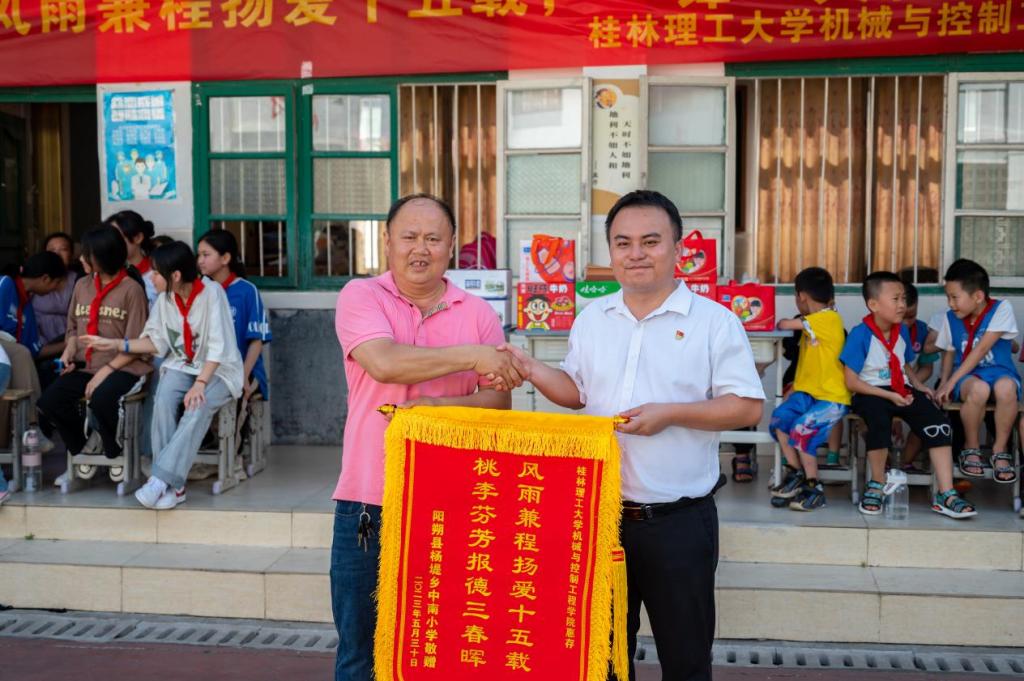 阳朔县杨堤乡中南小学校长苏英祚向学院赠送锦旗