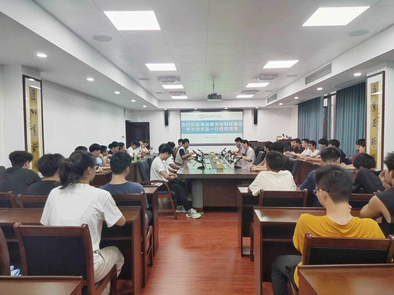 会上,学院党委副书记王迎波首先对海目星激光科技集团李进财总监一行的到来表示了热烈的欢迎和衷心的感谢。他强调,学院一直致力于培养具有创新精神和实践能力的高素质人才,与海目星激光科技集团的合作将为学生们提供更广阔的实践平台和就业机会。随后,王副书记详细介绍了学院学生的专业情况,包括专业设置、师资力量、科研成果等方面,展示了学院在机械相关领域的教育优势和人才培养成果。