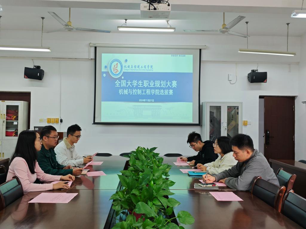 为了帮助大学生更好地规划个人职业发展路径,明确未来方向,11月21日,机械与控制工程学院在学院会议室举办了一场以“梦想启航,规划未来”为主题的大学生职业生涯规划比赛。旨在帮助学生深化自我认知,明确职业目标,为未来生涯发展进行规划。