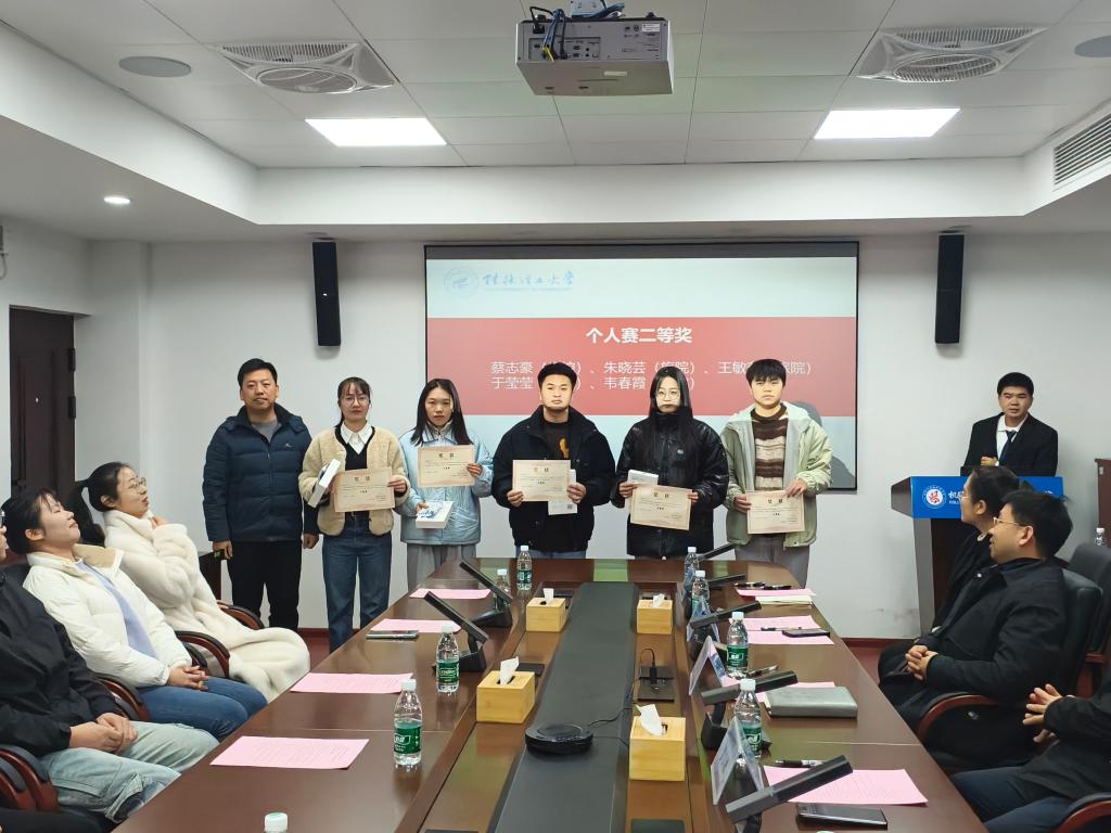颁奖仪式分为个人赛和团体赛两个环节。在个人赛颁奖中,主持人依次公布了三等奖、二等奖、一等奖及入围名单,并分别由刘培培老师、于文霖老师、罗义淞副书记为获奖选手颁发获奖证书及奖品,团体赛颁奖同样精彩纷呈。主持人宣布各奖项名单后,本别由王成圆老师、王迎波副书记、王洪让副部长为获奖选手代表颁发获奖证书及奖品,他们展现的强烈的团队凝聚力和合作精神,使得现场掌声不断,将仪式推向了高潮。
