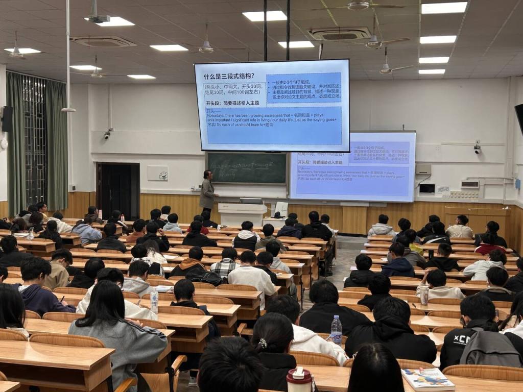 为完善学生英语能力培养体系,提升四级考试备考成效,我院于11月20日晚在06207举办大学英语四级翻译专项辅导讲座。本次讲座邀请外国语学院资深教师张华担任主讲,面向全体大一学生开展翻译能力系统训练。作为本学期四级备考系列辅导的收官之作,本场讲座标志着涵盖听力、阅读、写作、翻译四大模块的完整辅导体系已构建完成。