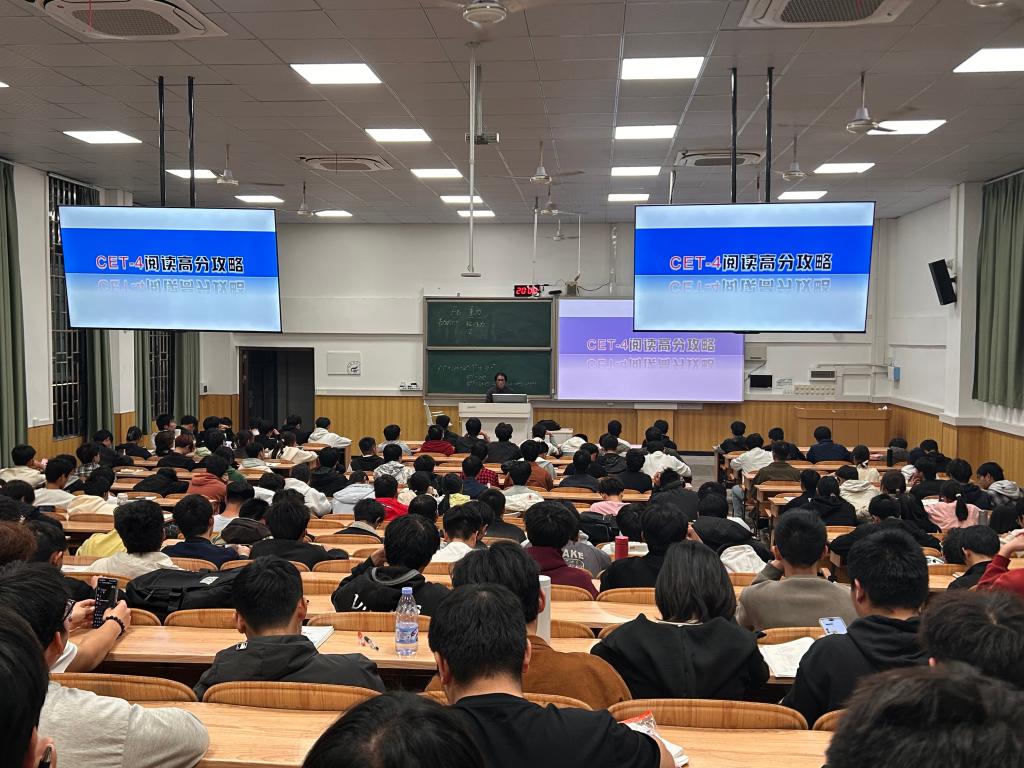培训邀请外国语学院张华老师,张老师紧扣四级考试大纲要求,内容紧密围绕听力、阅读、写作、翻译四大核心板块展开。在统一规划的核心知识框架下,主讲教师结合各年级学情调研数据,对课程难度、讲解深度及训练重点进行了差异化设计。教学过程中注重讲练结合与师生互动,通过真题剖析、策略讲授与现场答疑,帮助学生明晰自身薄弱环节,掌握关键备考方法。