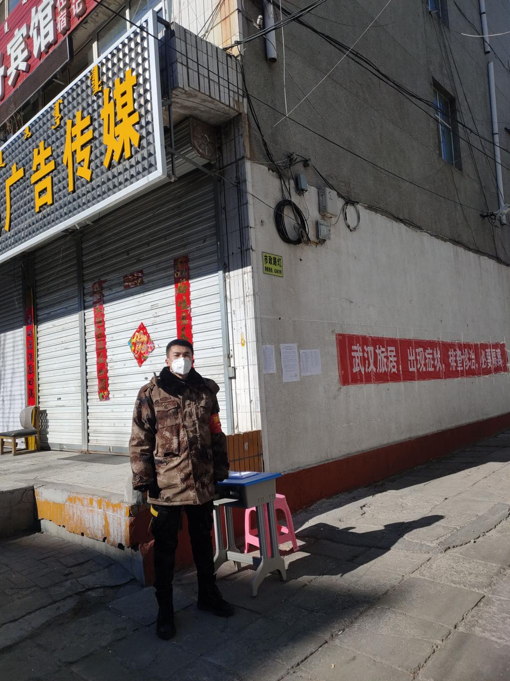(闫子琦在社区路口值勤)