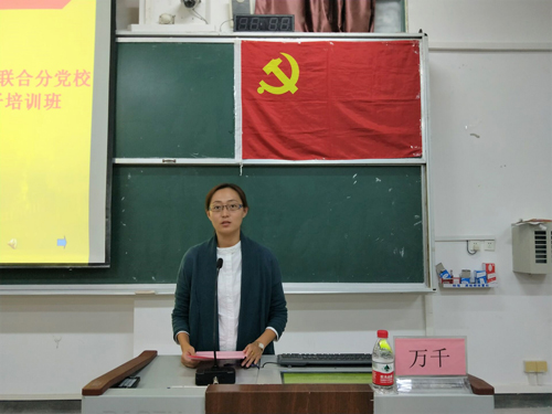 最后,艺术学院万千老师为培训班作总结发言,她顺利结业的培训班学员表示祝贺,总结了在培训班过程中,各位学员在入党动机、理想信念和个人发展上的收获与进步,对学员提出三点希望:一是坚持理论学习,持续坚定理想信念;二是坚持正确的入党动机,主动接受党组织的考验;三是坚持学以致用,学会发挥先锋作用,以实际行动争取早日入党。