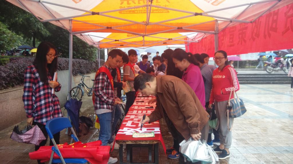 为贯彻落实学校2016年“学生资助政策宣传月”工作方案和深入推进我院“两学一做”学习教育工作进程,充分发挥我院学生党员的先锋模范作用,助力我院开展资助政策宣传,524日中午,我院党建办联合奋进社、宿管委于雁山校区1号食堂广场举办国家资助政策宣传及资助诚信签名活动。