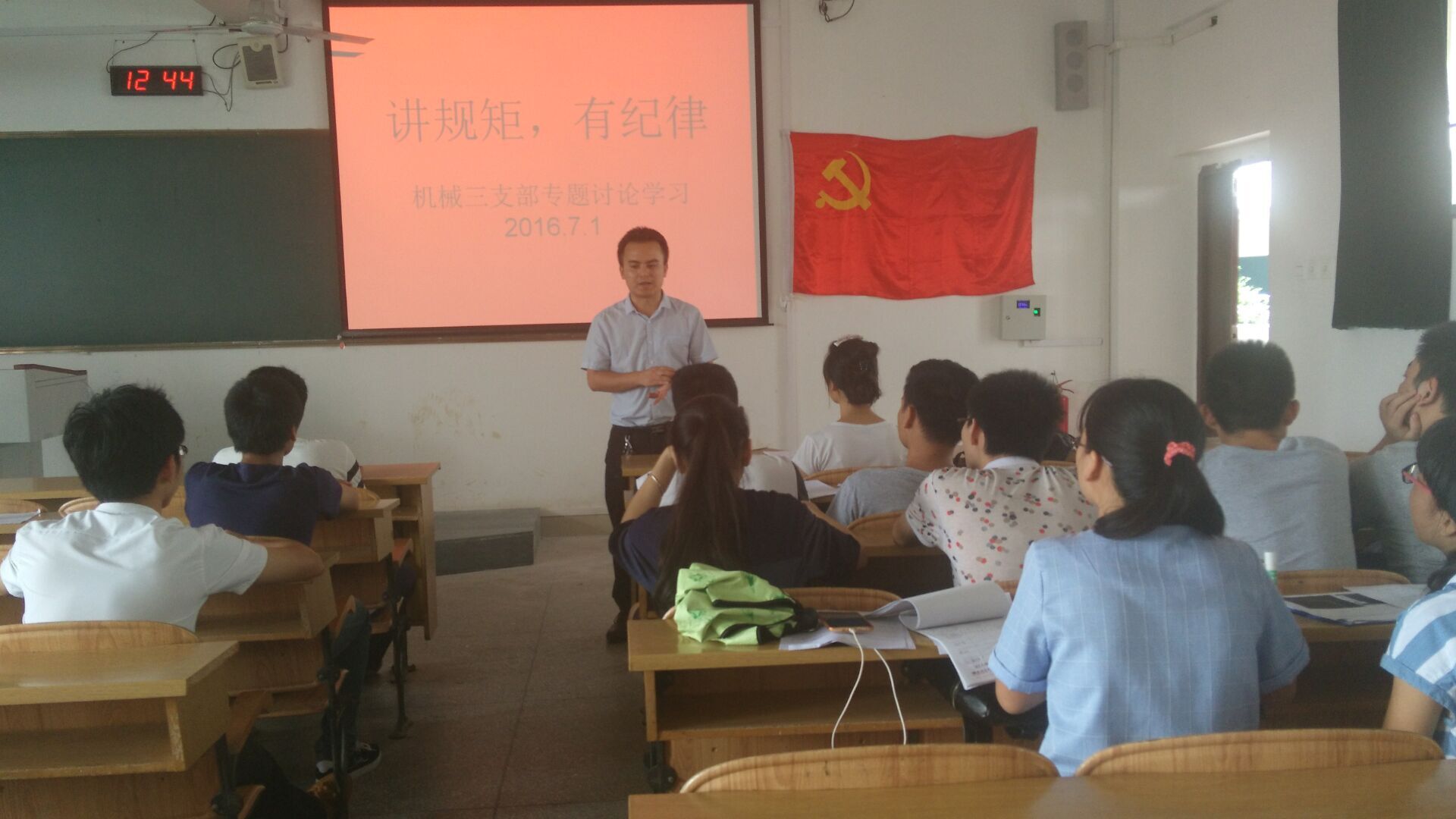 7月1日下午,我院机械三支部召开“讲规矩、有纪律”专题讨论会,支部书记黎云鹏围绕“两学一做”学习教育和“讲规矩、有纪律”要求,为支部全体党员讲党课。