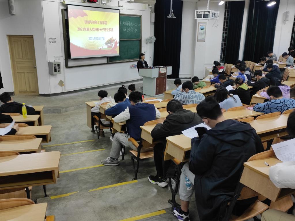 本次考试主要考察入党积极分子对党的基本知识的掌握程度,重点考察党章的相关知识。考试过程中各位学员自觉遵守考规考纪,精神饱满,认真思考、细致作答。各位监考人员分散在考场周围,全方位地关注着考场动态,考试全程秩序井然,展现出了机控学子良好的精神面貌。