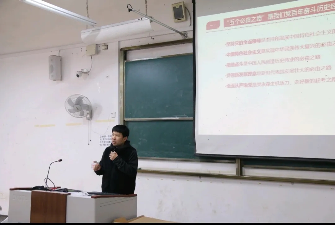 为深入学习党的十九届六中全会精神,共迎二十大的到来,,3月31日中午,学院各学生支部党员于07118教室开展2022年第一季度党课,本次党课由学院党委副书记王迎波主讲。