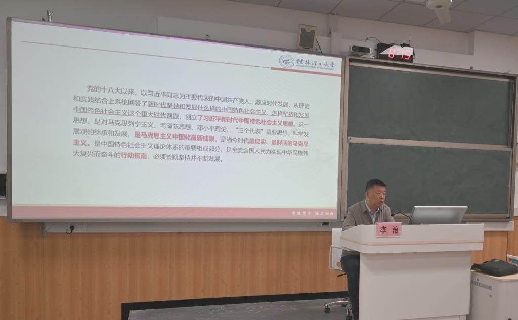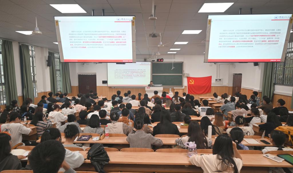 11月10日,学院党委书记李治在06105教室以《坚持以人民为中心的发展思想---深入学习领会习近平新时代中国特色社会主义思想》为题给2023年秋季学期联合分党校发展对象培训班学员讲授第一堂党课。